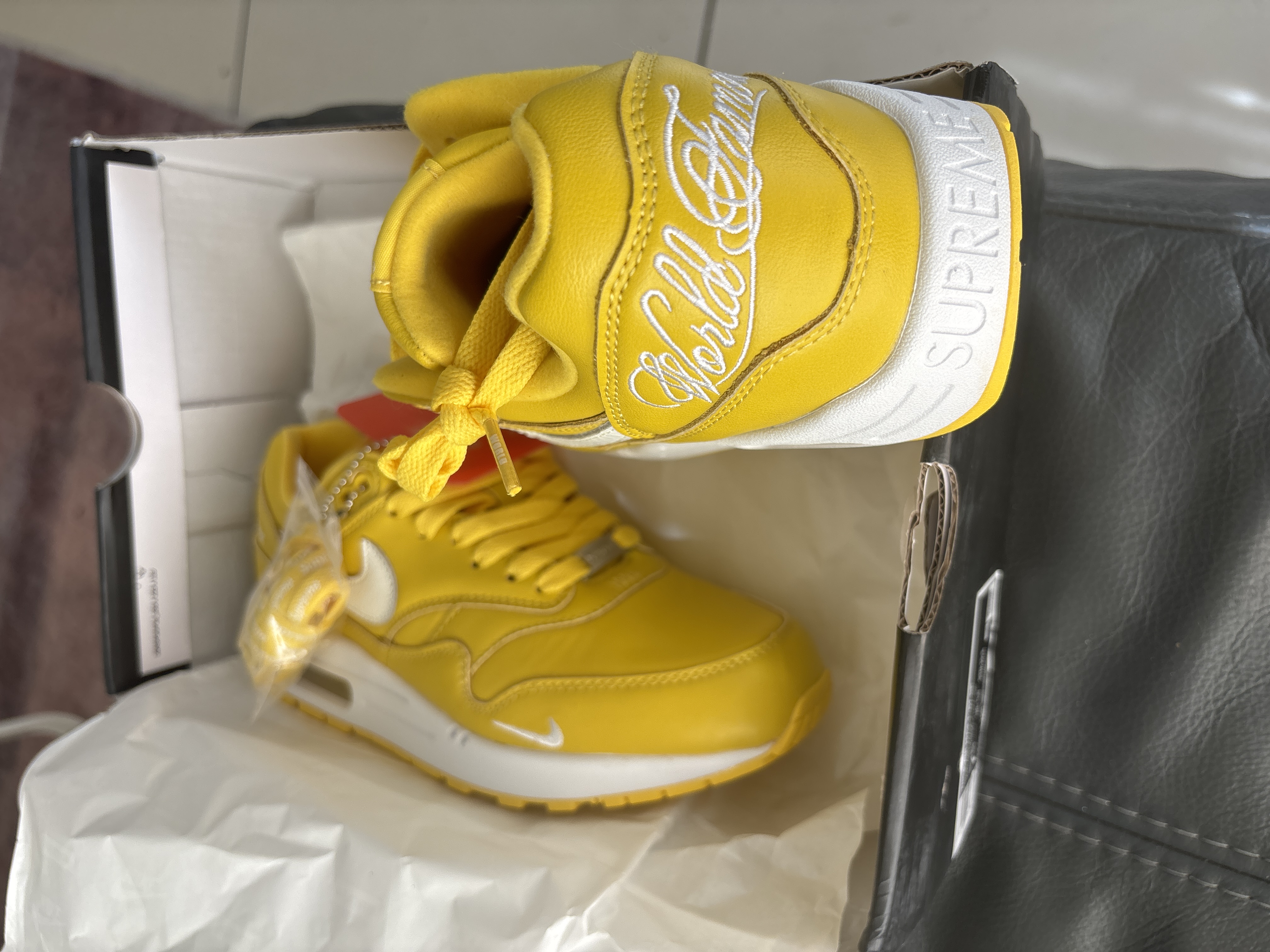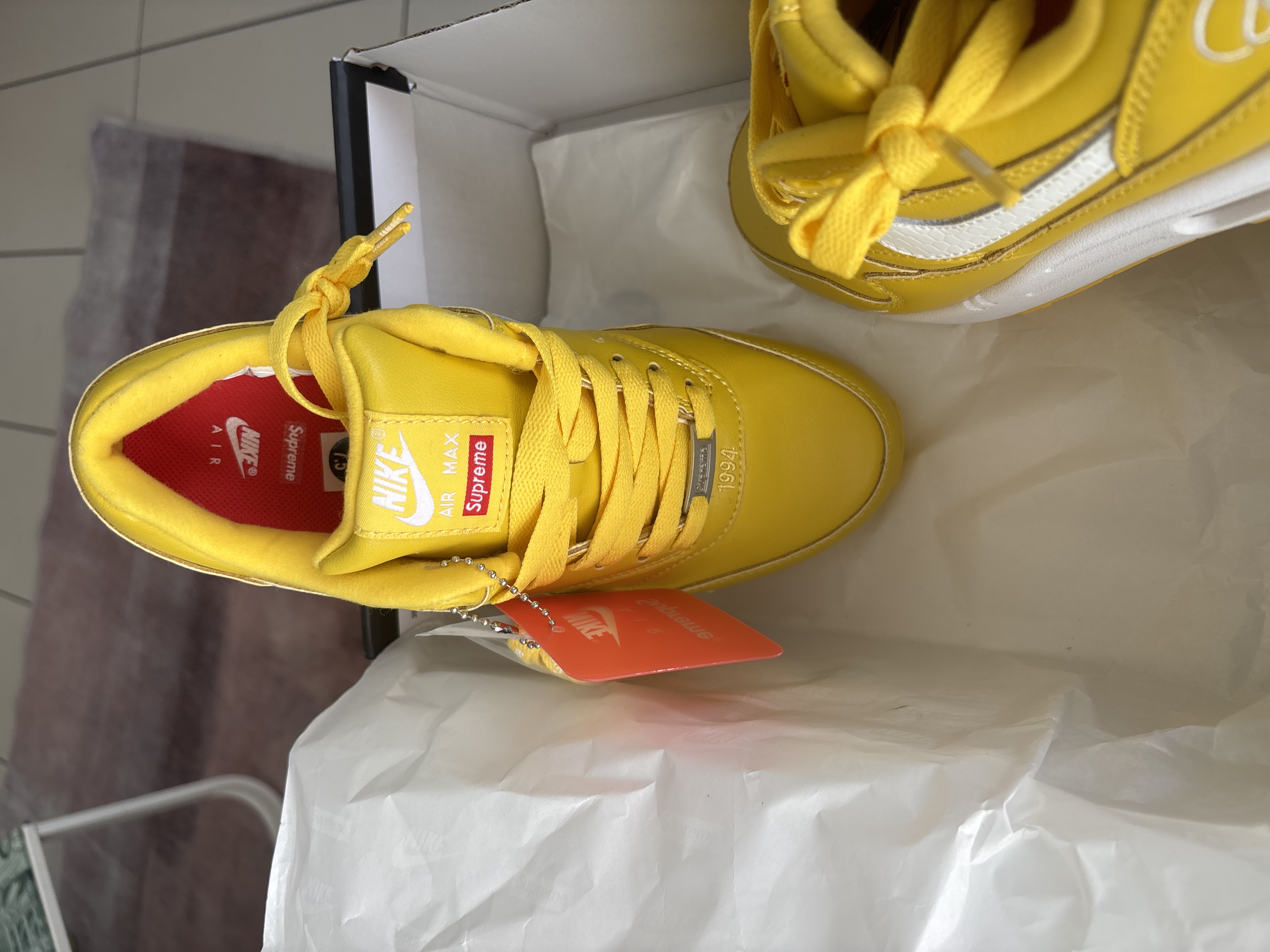 Couleur jaune très vive qui attire immédiatement l’attention * Parfait pour se démarquer dans un style streetwear ou urbain * Design moderne avec une touche rétro très tendance ⸻ 👟 Confort et technologie * Modèle de la gamme Nike Air Max * Semelle avec bulle d’air visible pour un amorti optimal * Confort adapté à un usage quotidien (marche, sorties, lifestyle) ⸻ 🆕 Produit neuf * Jamais porté (encore dans la boîte) * Idéal pour offrir ou pour une première utilisation impeccable ⸻ 🔄 Polyvalence * Peut être porté avec : jean, jogging, short * Convient à différents styles : casual, sport, streetwear