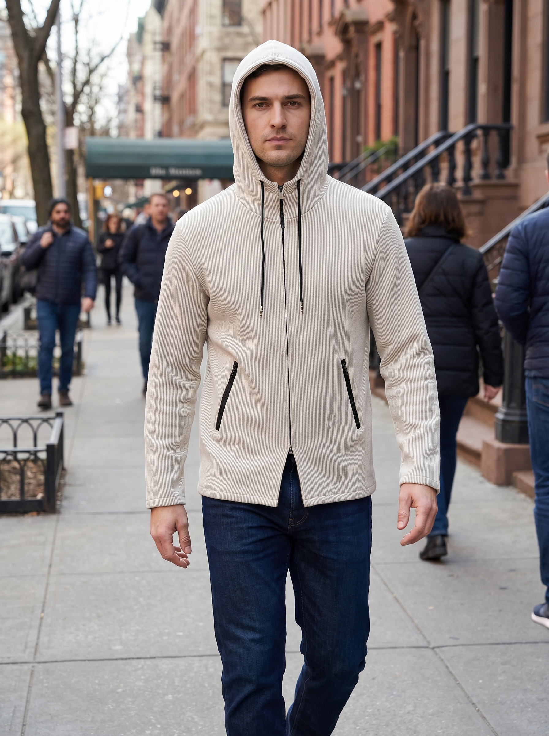 Cette veste à capuche mi-longue est conçue en polyester 100%, avec un tissu extérieur très lisse offrant un rendu moderne et soigné. Sa doublure polaire fine apporte une légère chaleur sans alourdir la silhouette, idéale pour un usage quotidien. Grâce à sa conception légère, elle est parfaitement adaptée aux climats doux, notamment dans les îles pendant la période des alizés. Elle convient particulièrement pour les saisons automne, printemps et début d’hiver, où les températures restent modérées. Sa coupe structurée et son design épuré en font une pièce polyvalente, facile à porter aussi bien en tenue casual qu’avec une tenue plus habillée