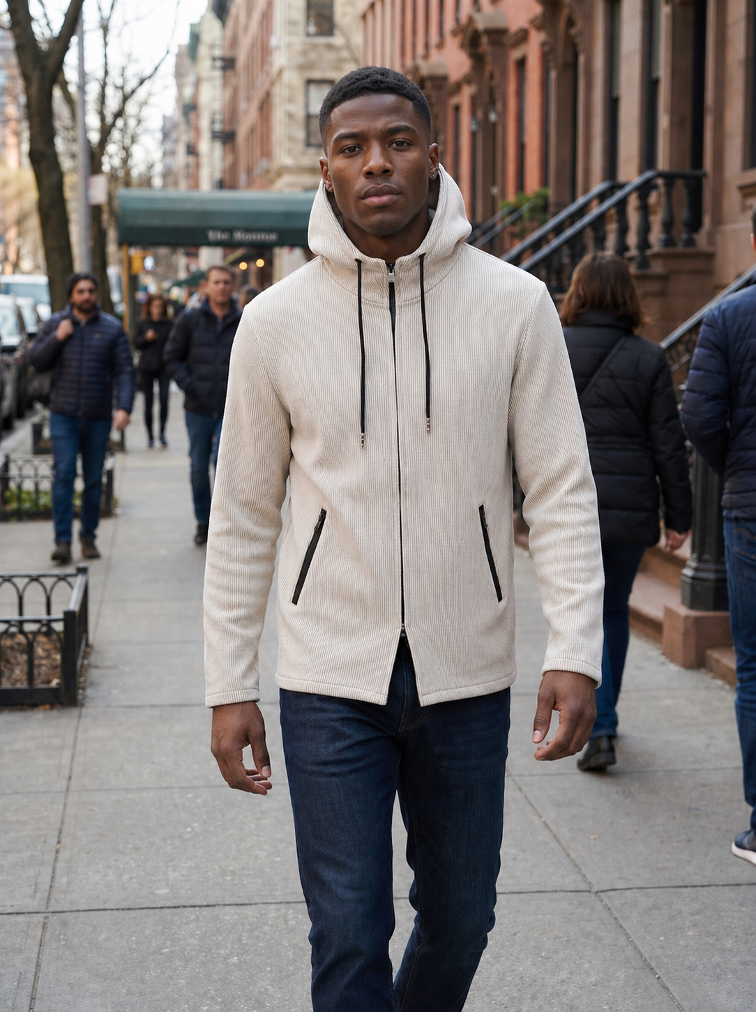 Cette veste à capuche mi-longue est conçue en polyester 100%, avec un tissu extérieur très lisse offrant un rendu moderne et soigné. Sa doublure polaire fine apporte une légère chaleur sans alourdir la silhouette, idéale pour un usage quotidien. Grâce à sa conception légère, elle est parfaitement adaptée aux climats doux, notamment dans les îles pendant la période des alizés. Elle convient particulièrement pour les saisons automne, printemps et début d’hiver, où les températures restent modérées. Sa coupe structurée et son design épuré en font une pièce polyvalente, facile à porter aussi bien en tenue casual qu’avec une tenue plus habillée