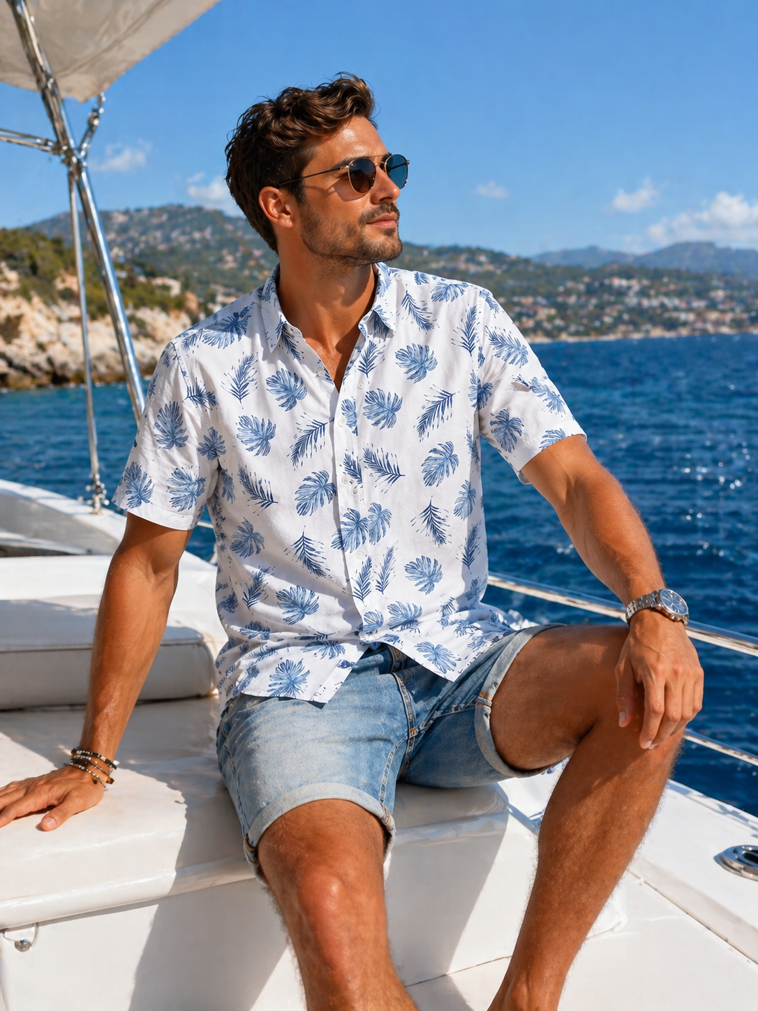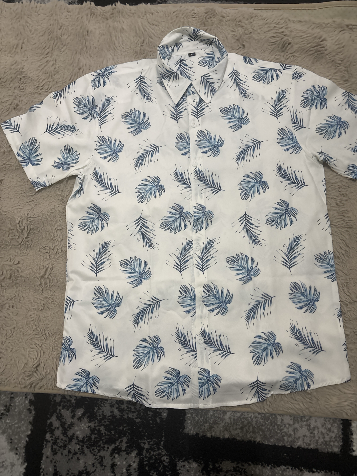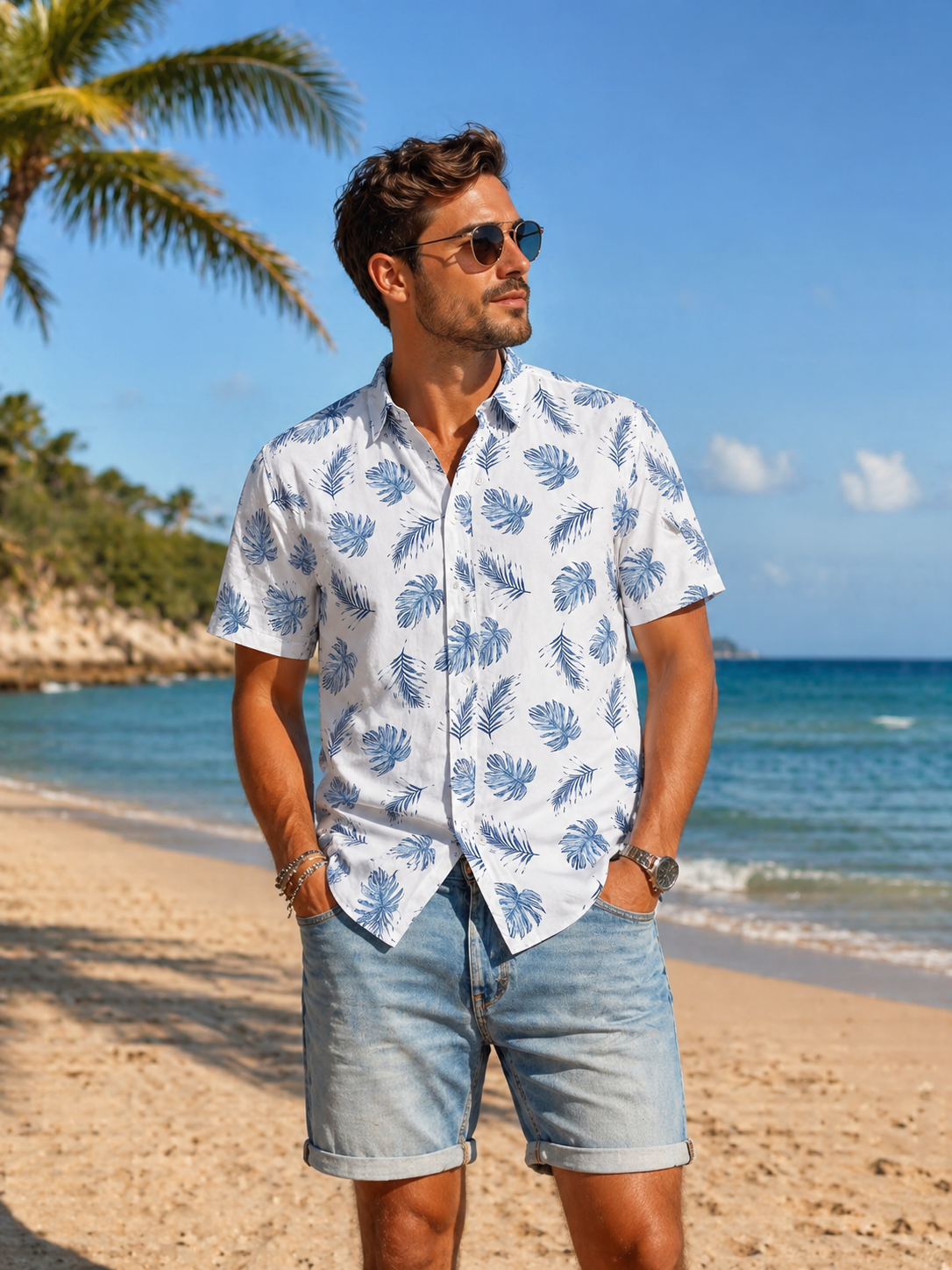 Chemise à manches courtes au style décontracté, parfaite pour une ambiance estivale et bord de mer. Confectionnée dans un tissu polyester fin et léger, elle offre une sensation fluide et respirante, idéale pour les journées chaudes. Son design se distingue par un motif de feuilles tropicales aux teintes bleutées sur fond clair, apportant une touche fraîche et naturelle. La coupe est simple et droite, facile à porter, avec une allure à la fois casual et légèrement rurale, évoquant les vacances, la détente et les paysages ensoleillés. Polyvalente, cette chemise s’adapte parfaitement à un look plage ou détente, que ce soit avec un short en jean ou un pantalon léger. Elle incarne un style estivale sans effort, entre confort et esthétique tropicale.